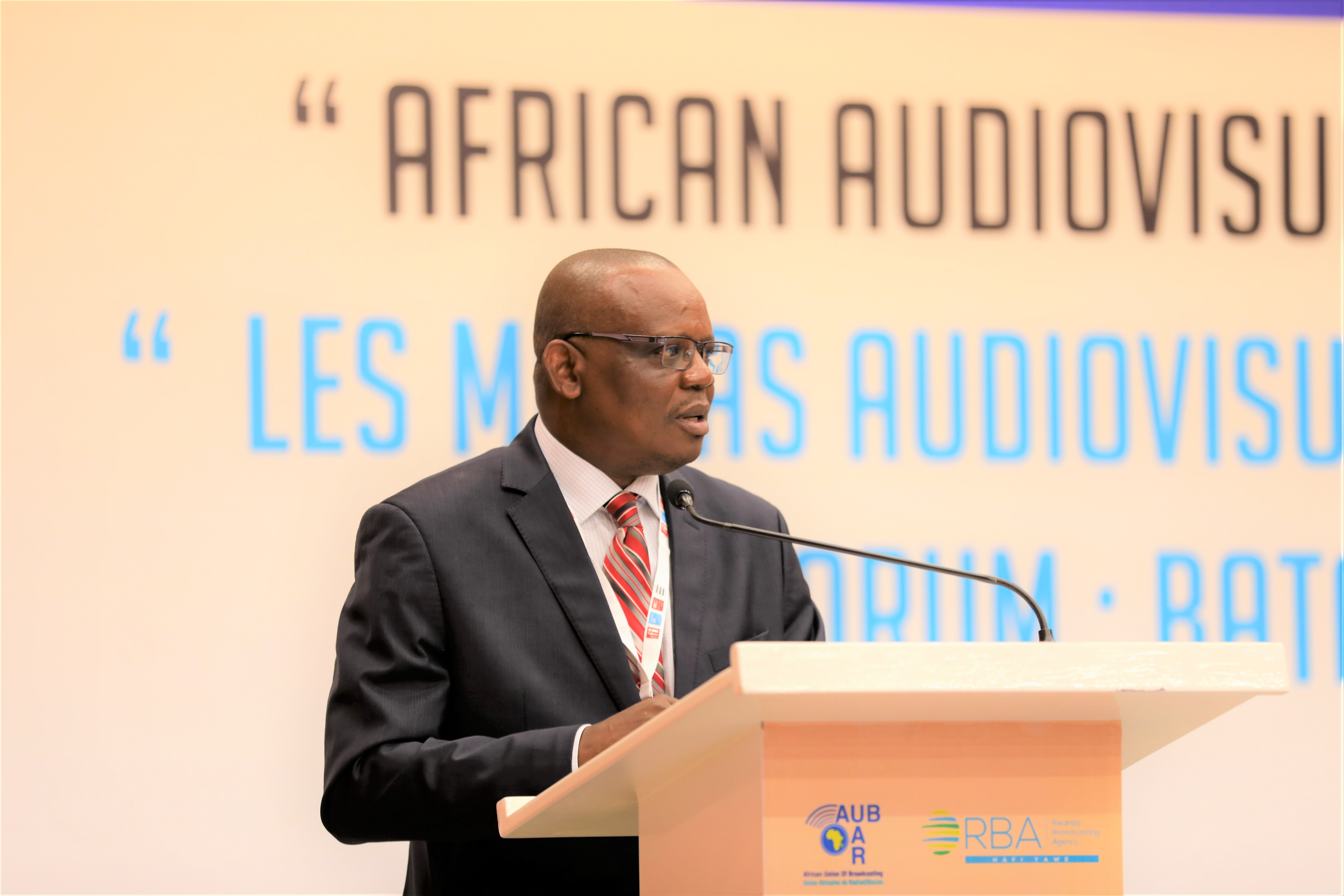 - Grégoire Ndjaka, Directeur Général de l'Union Africaine de Radiodiffusion, lors de l'Assemblée Générale de l' Union Africaine de Radiodiffusion à Kigali au Rwanda le 16 mars 2018